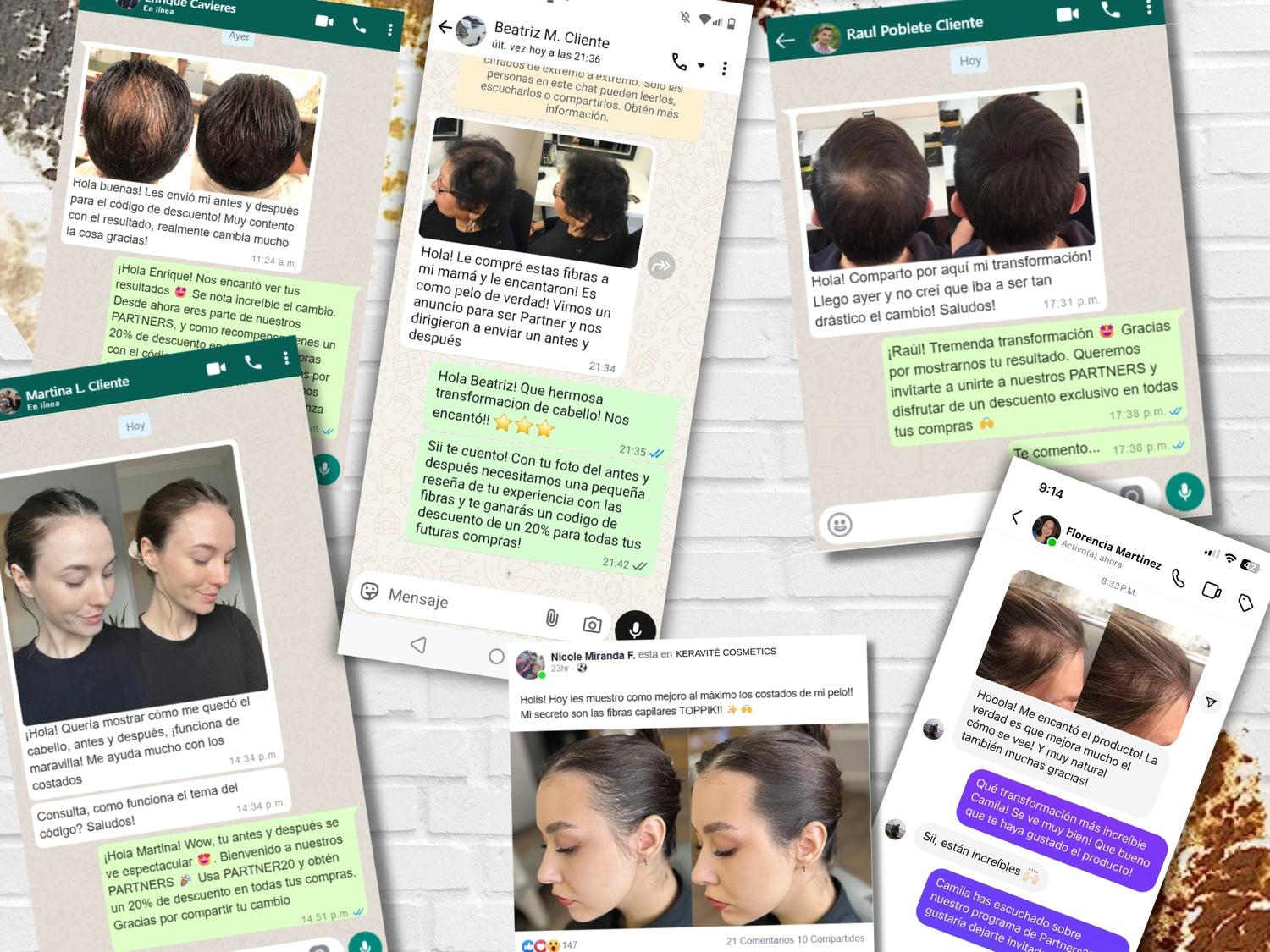 Solo envíanos una pequeña reseña de tu experiencia con nuestras fibras capilares y una foto de tu antes y despues para disfrutar de increibles beneficios!