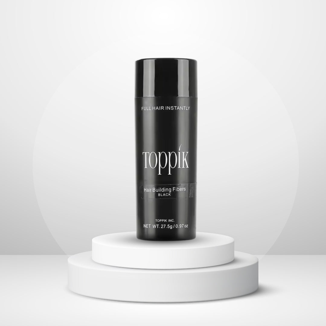 Las fibras capilares Toppik están hechas de fibras de queratina naturales y coloreadas, la misma proteína que forma el cabello humano. La proteína de queratina se deriva de una fuente natural y es casi idéntica al cabello humano.
